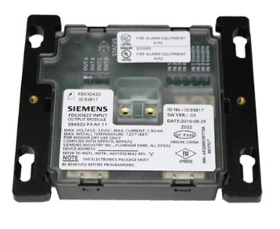 Module 4 đầu vào / 4 đầu ra Siemens FDCIO422 được thiết kế để cung cấp phương tiện giao tiếp các thiết bị nối tắt trực tiếp với Thẻ Vòng lặp Thiết bị (Model DLC); FireFinder XLS, cũng như bảng điều khiển báo cháy Cerberus PRO (FACP).